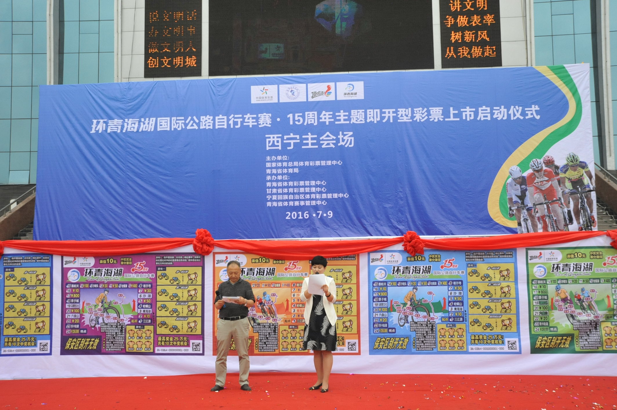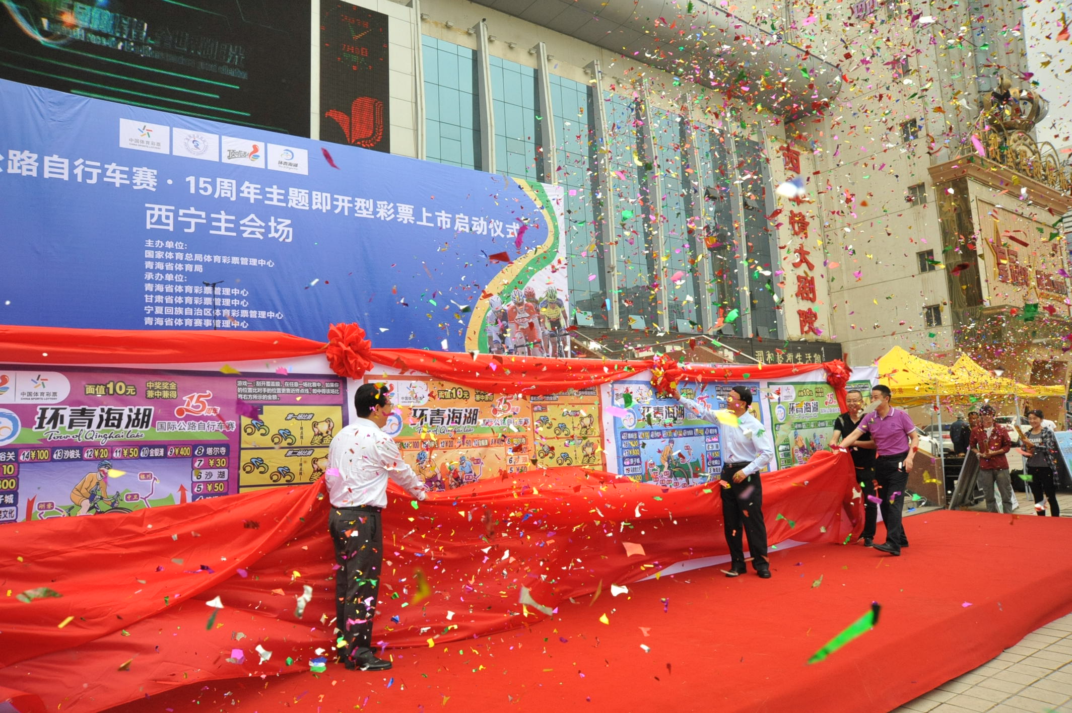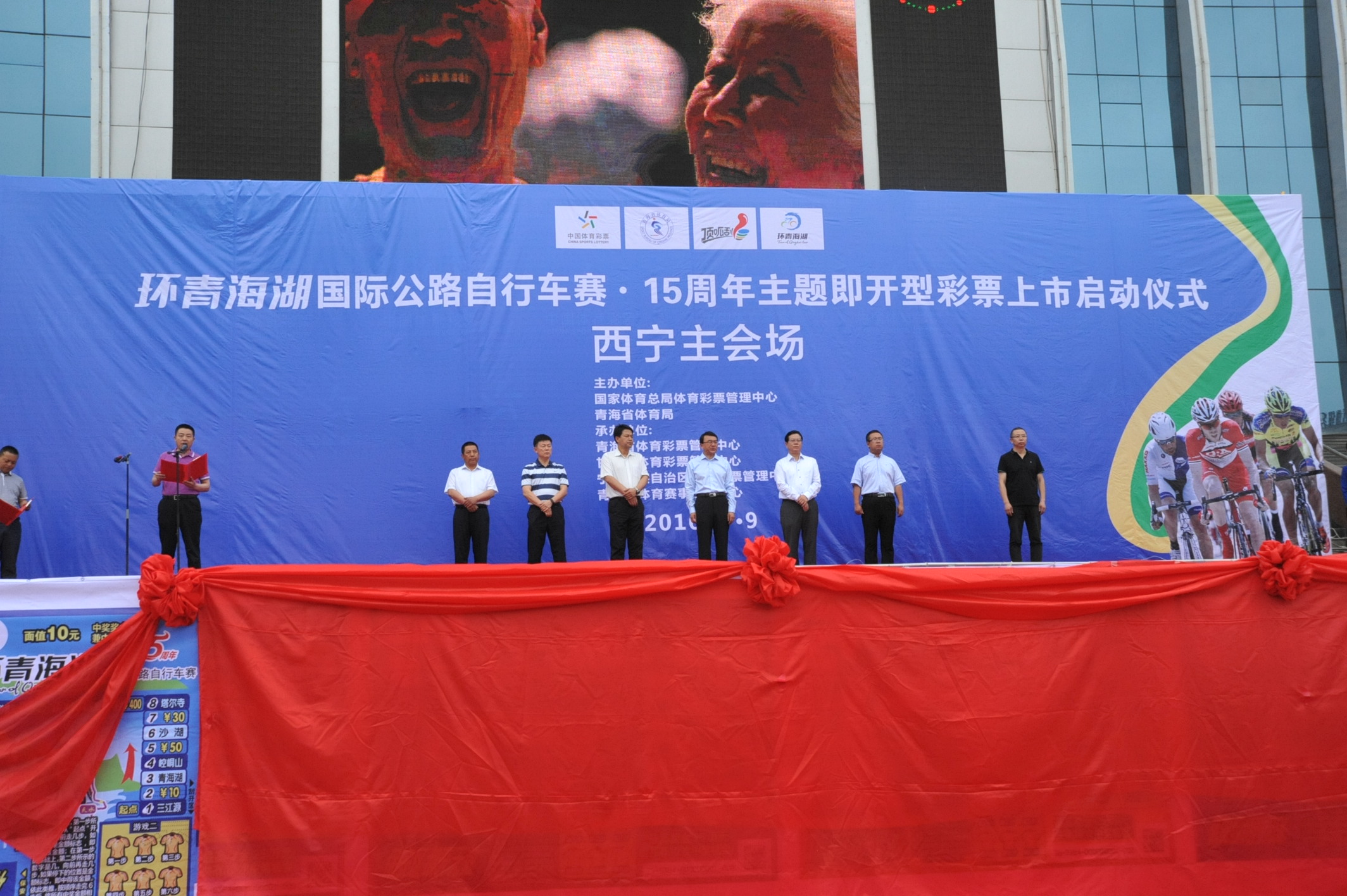 激动人心的7月9日,青海省体育彩票管理中心在西宁市体育馆举行了“环青海湖国际公路自行车赛•十五周年”主题即开型体育彩票启上市动仪式(西宁主会场),青海省体育局局长张宁、青海省体育局办公室主任王伟章、青海省体育赛事管理中心主任王宪忠、青海省体育彩票管理中心主任郭大忠、宁夏回族自治区体育彩票管理中心主任张韬、甘肃省体育彩票管理中心副主任孟小元等领导同现场市民一起揭开了“环湖赛•十五周年”体育彩票的神秘面纱。下面就让我们到现场感受一下吧!