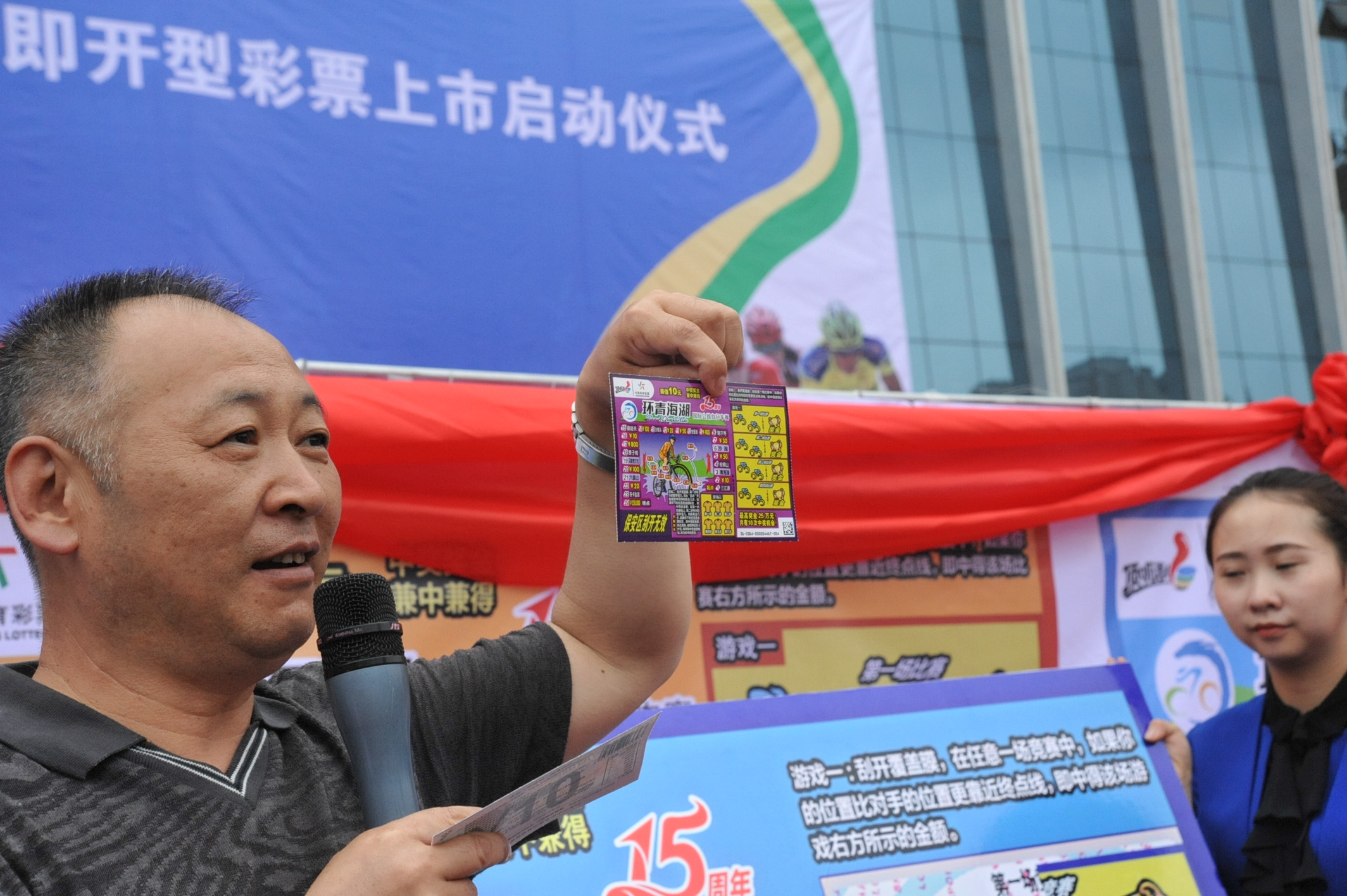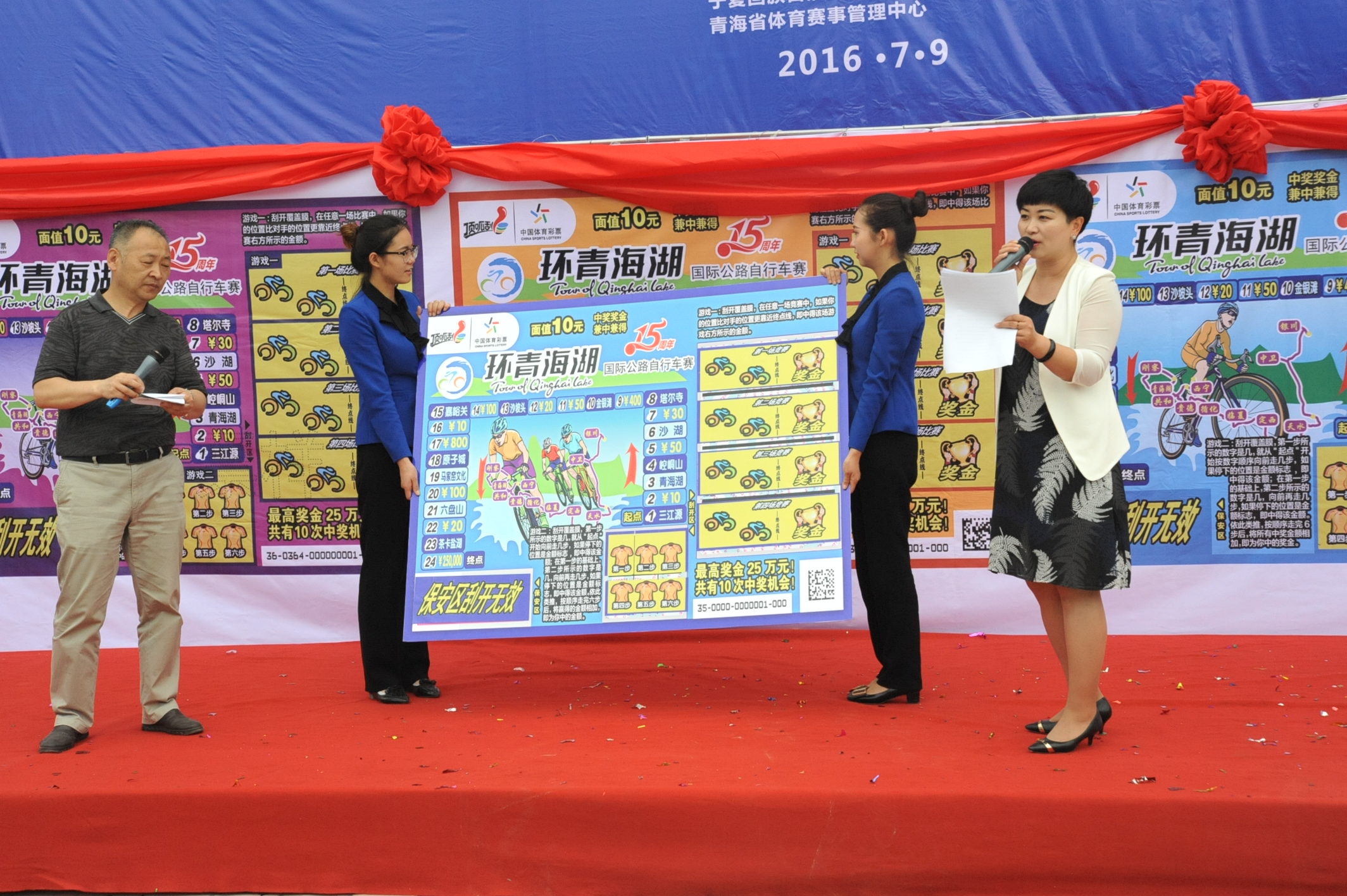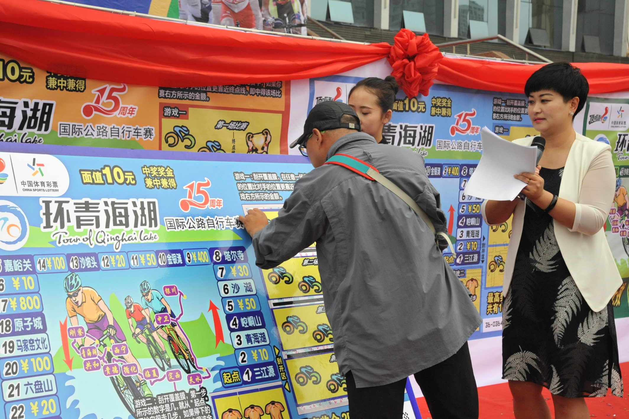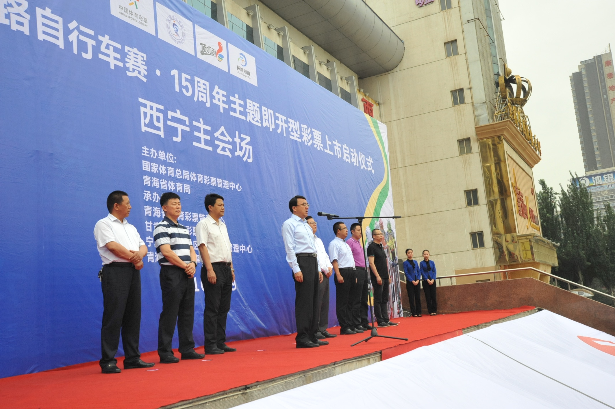 激动人心的7月9日,青海省体育彩票管理中心在西宁市体育馆举行了“环青海湖国际公路自行车赛•十五周年”主题即开型体育彩票启上市动仪式(西宁主会场),青海省体育局局长张宁、青海省体育局办公室主任王伟章、青海省体育赛事管理中心主任王宪忠、青海省体育彩票管理中心主任郭大忠、宁夏回族自治区体育彩票管理中心主任张韬、甘肃省体育彩票管理中心副主任孟小元等领导同现场市民一起揭开了“环湖赛•十五周年”体育彩票的神秘面纱。下面就让我们到现场感受一下吧!