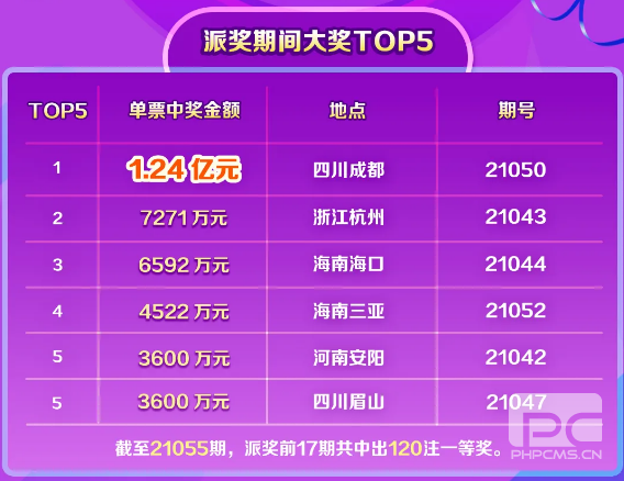 回顾派奖至今单票中奖金额TOP5