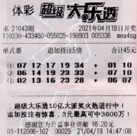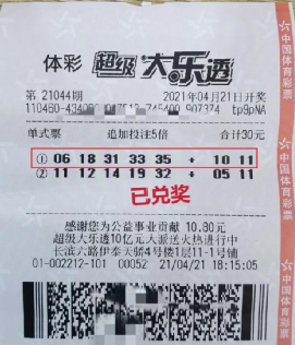 在大乐透第21043期开奖中