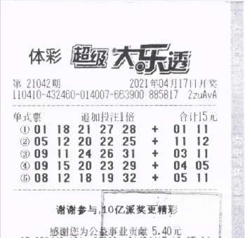 她的中奖彩票是张5注号码追加票