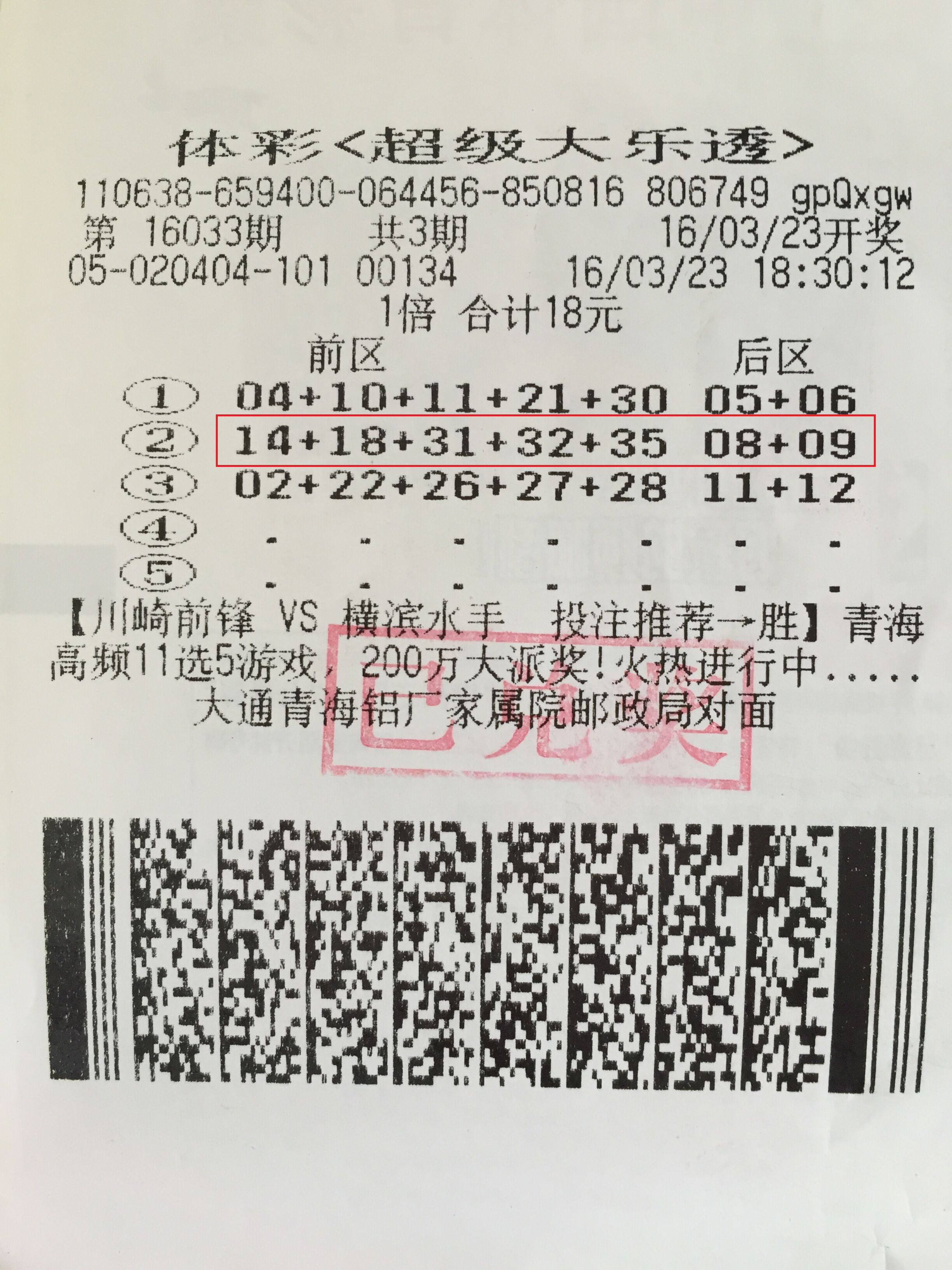 3月26日,体彩大乐透第16034期开奖,当期开奖号码为:14 18 31 32 35 + 09 10。青海省一彩民喜获其中一注二等奖,获得奖金26.35万元。![]() 3月29日下午,中奖彩民符先生在爱人的陪同下来到省体彩中心兑奖。符先生是外地人,已经在西宁定居好些年了。谈起买彩票的历史,夫妻俩异口同声,“真是好多年了,至少有十年”。符先生基本什么样的彩票都买过,对于体彩大乐透,更是从上市那时起,就开始买,基本期期不落。符先生买体彩大乐透基本全靠机选,“没有时间去研究,全凭运气”。符先生买大乐透还有个习惯就是喜欢买多期票,符先生解释说,“买多期票,省时省力,有的时候忙,真的就忘记去买彩票了,每当没买彩票开奖后,都会觉得好遗憾……” 3月23日上午,符先生路过位于西宁市大通青海铝厂家属院邮政局对面的20404体彩销售点时,随机打了3注体彩大乐透,共打了3期,总投入18元。令符先生没有想到的是就是这张小小的彩票竟中了好几个奖项:中了1注五等奖还中了1注二等奖。总奖金合计263596元。 当问起中奖后的感受,符先生还在摇头遗憾,“就差那么一点点,就中得千万元了”。一旁的妻子却风趣地说,“乐得不行啦,买彩票这么多年,第一次中这么大个奖。” 目前,青海省可以进行多期投注的体彩玩法有“体彩大乐透”、 “七星彩” 和“高频11选5”三种玩法,彩民最多可以一次性连续投注多期。如果您怕忙于工作而忘记购买彩票的话,不妨尝试一下这种省时省心的多期投注方法。还有,大家千万别忘了追加投注,小小1元钱,回报可不小哦。(苏仁君) |