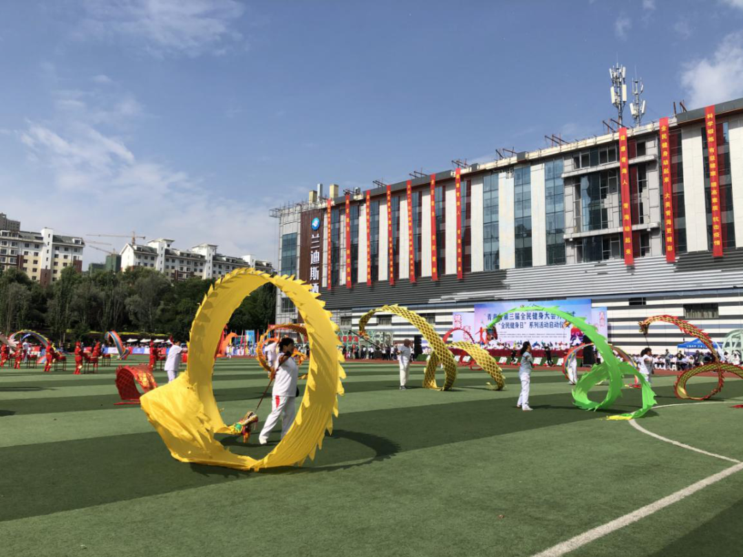 ![]() 此次活动以“绿色健身 逐梦青海”为主题,以“璀璨青海动起来、活力青海武风采、健康青海驻青春、幸福青海民安泰”为篇章。来自全省中小学生、健身爱好者等社会各界群众1000多人以大鼓舞龙、健身操、街舞、太极、武术、鞭陀、体育舞蹈、柔力球、空竹、锅庄、轮滑、拳击、跆拳道等进行项目展演,为呈现大家一台精彩的文体盛宴。