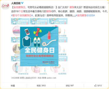 下面还有更让人骄傲的 前方高能预警 ↓↓↓ 8月8日全民健身日当天 中国体育彩票 “燃动中国”全民健身嘉年华 被人民日报微博点名联动