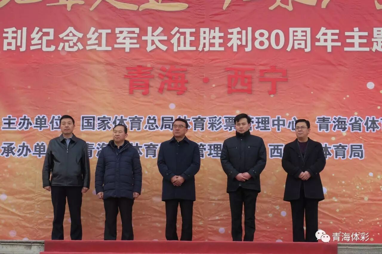 为纪念中国工农红军长征胜利80周年,12月10日,由国家体育总局体彩中心、青海省体育局主办,青海省体育彩票管理中心、西宁市体育局承办的红军长征胜利80周年为主题的体彩顶呱刮即开票首发仪式在西宁市体育馆举行。省体育局局长张宁、省体育局规划财务处处长范军、省体育局群体处副处长魏有元、省体彩中心主任郭大忠、西宁市体育局局长韩斌等领导出席了仪式。 领导出席仪式现场 青海省体育彩票管理中心主任郭大忠讲话