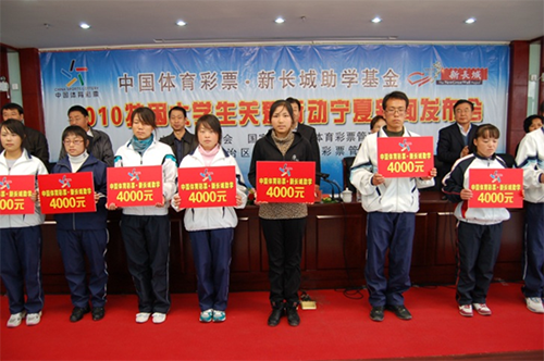 为了让贫困地区的孩子享受到现代化的教育设施,让贫苦家庭的学子继续接受专业系统的教育,近年来,中国体育彩票不断开展丰富多彩的公益助学活动,让无数学子、老师、家长的脸上绽开了幸福的笑容,让爱的阳光洒满了校园。