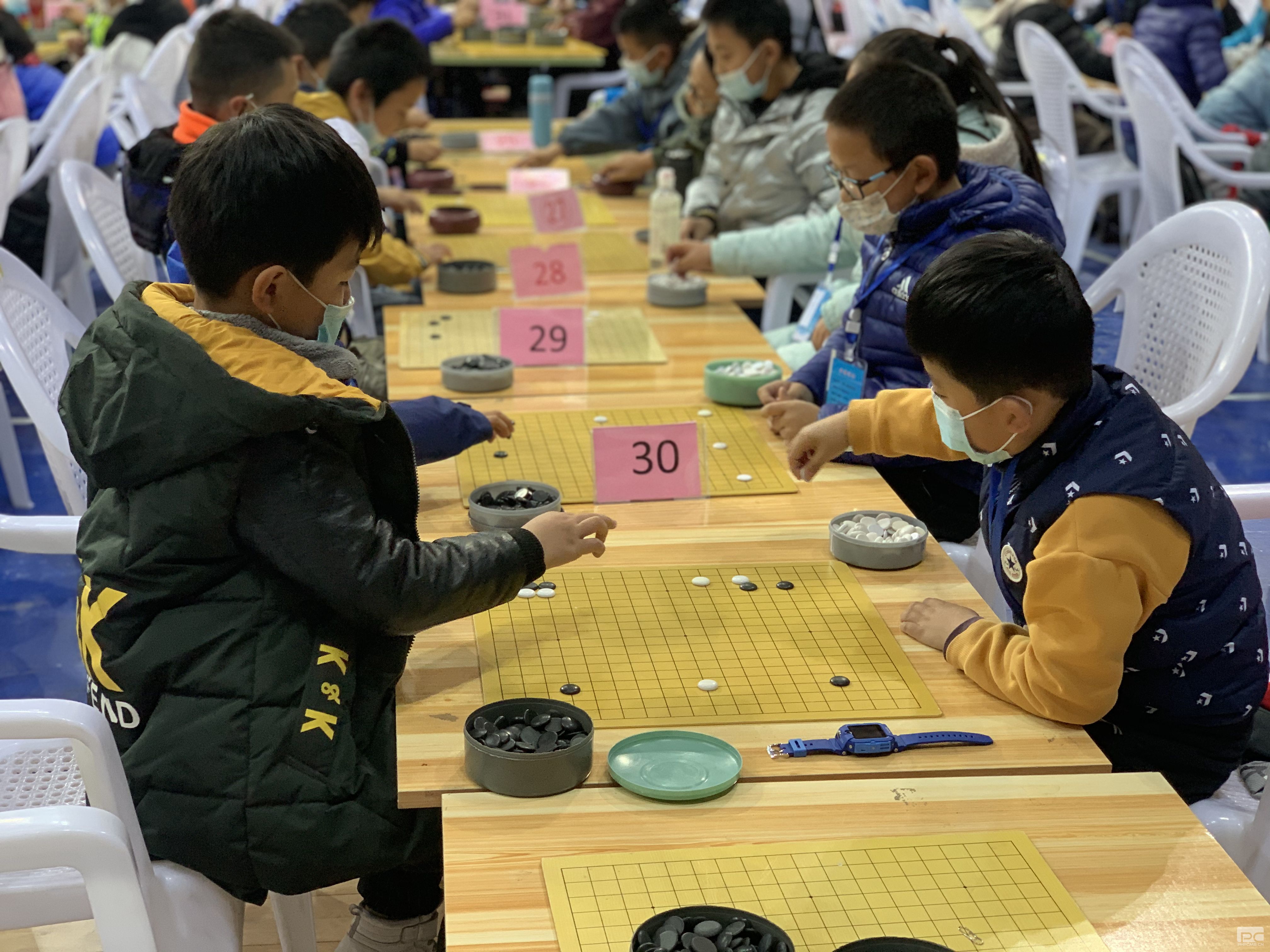 比赛现场,小棋手们静坐于棋盘前,全神贯注地思考着变幻的棋局,从容应战,小小的棋盘上演着一幕幕惊心动魄的对决。