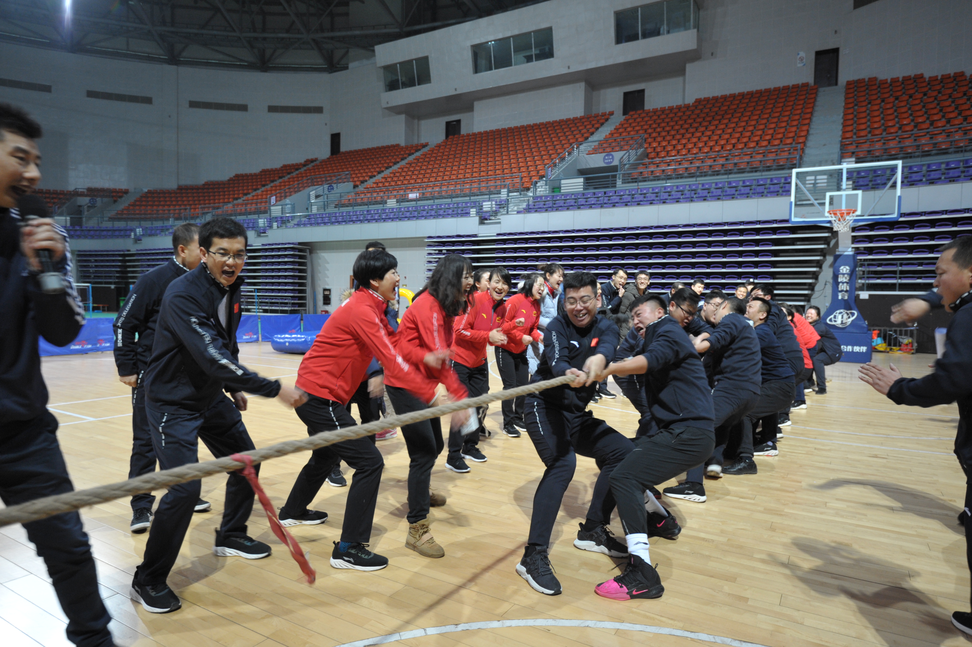 运动会有 “疯狂毛毛虫”、“摸石过河”、“快乐大脚”等多个趣味性的项目。大家投身其中,现场气氛热烈而和谐,欢呼声和呐喊声不断,体现了双方干部职工团结协作、积极向上、敢于拼搏的精神面貌。最后的集体项目“拔河”把整个运动会氛围推向高潮。在双方单位领导的带领下,职工们肩并肩,劲往一处使,拧成一股绳,团结与力量将赛场气氛再次点燃。