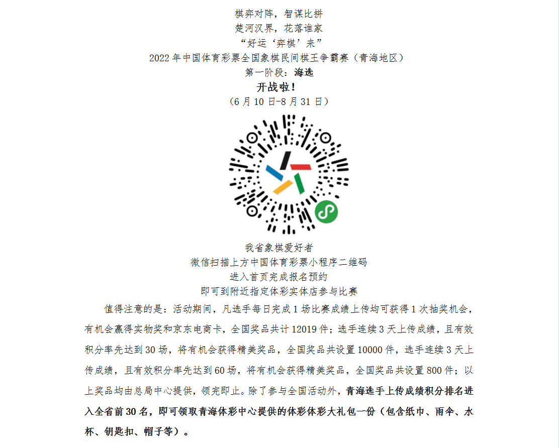 “好运‘弈棋’来” 2022年中国体育彩票全国象棋民间棋王争霸赛(青海地区)开战啦!