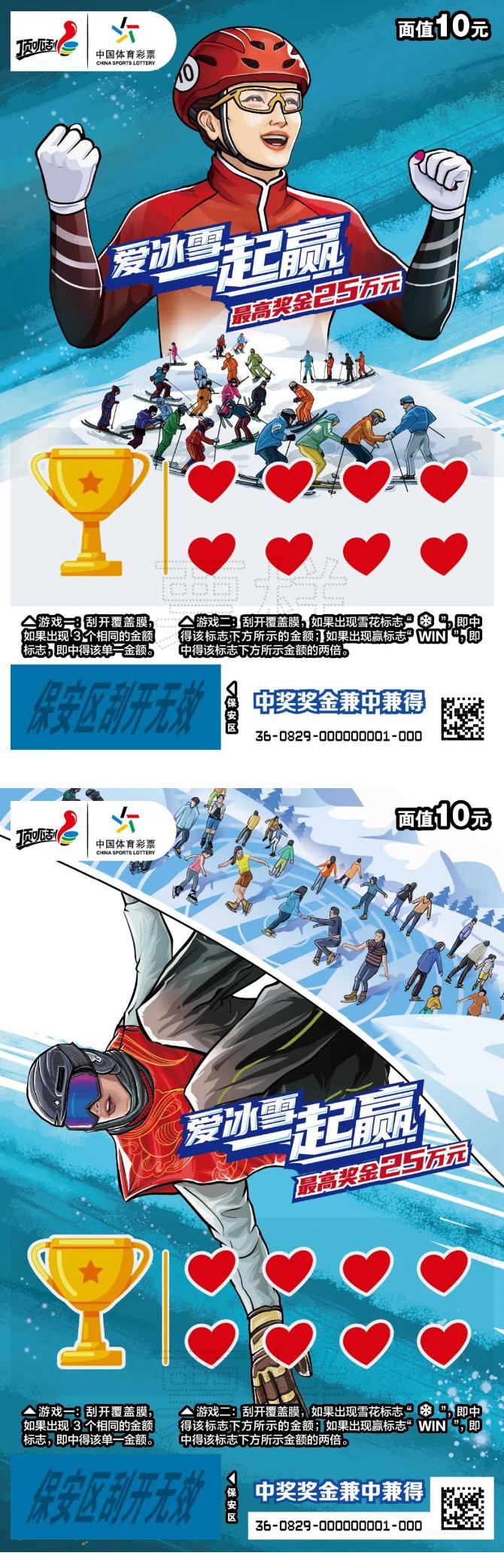 提到冬天 你最先想到的是什么? 最期待的又是什么呢? 是“未若柳絮因风起”的绚丽 还是“冰上舞 雪中腾”的酣畅 看着银装素裹的冰雪世界 就像来到了一个巨大的游乐园 仿佛置身梦幻的童话世界 滑雪、滑冰、打冰球…… 越来越多的冰雪运动 被大众所熟知 冰场上优美的舞姿 雪场上飒爽的英姿 寒冰冷刃间的激烈追逐 棋局博弈般的脑力角逐 无不让人跃跃欲试 而作为冰雪运动的有力支持者 中国体育彩票推出了冰雪主题即开票 无论是2022年的“为中国力量加油 冰雪” 还是今年新推出的“爱冰雪 一起赢” 都充分表达了对冰雪运动的支持与热爱