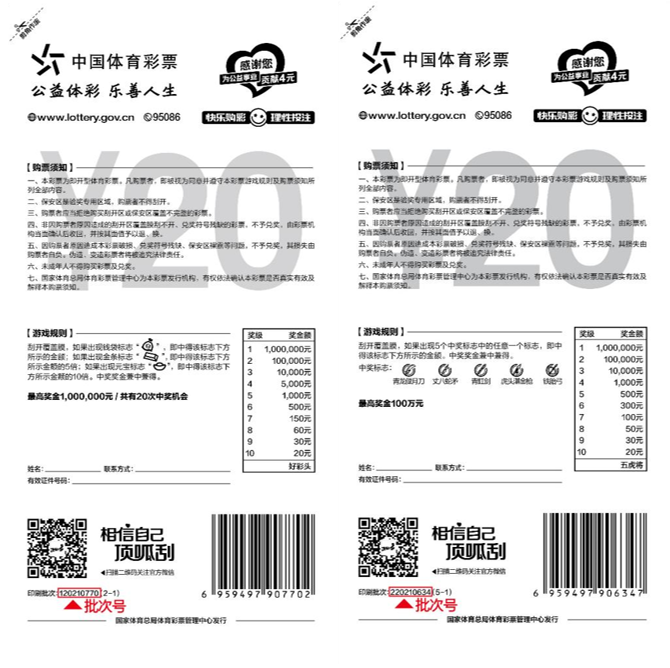 2021年印刷批次即开型体育彩票