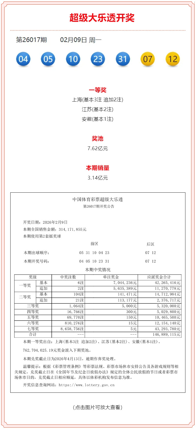 超级大乐透第26017期开奖公告